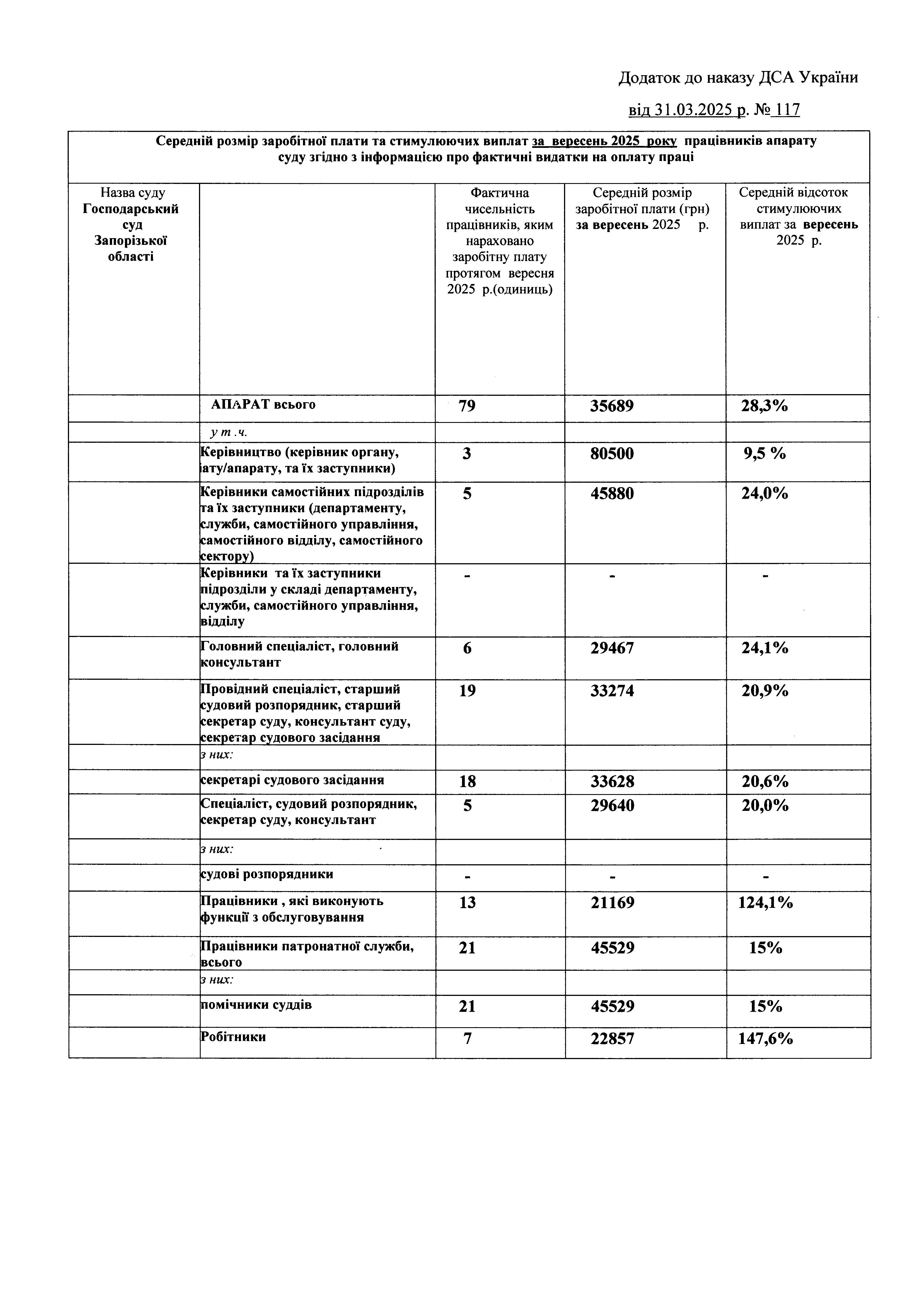 Інформація про середній розмір заробітної плати та стимулюючих виплат працівників апарату суду